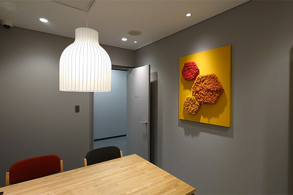 管理が楽なフェイクグリーンなどを用いた装飾も良いですが、当社では「生きているインテリア=スカンディアモス」のご提案が可能です。