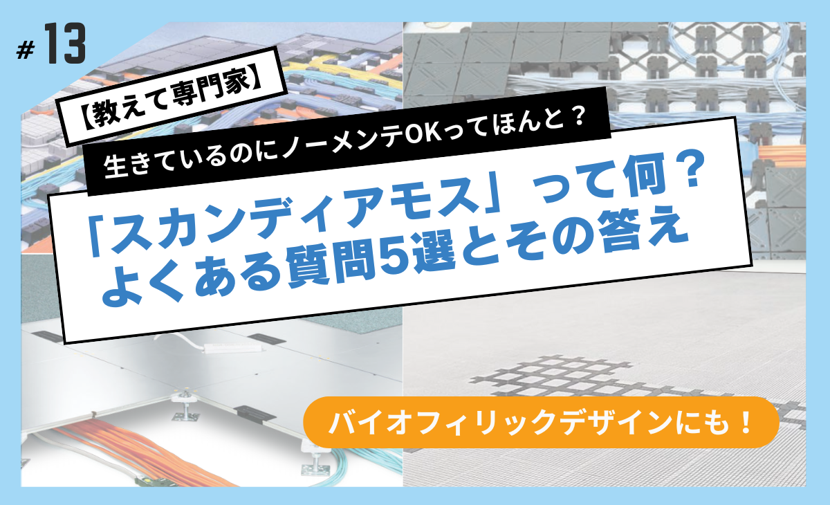 オフィスに自然物を取り入れること(バイオフィリックデザイン)は、働き方改革やWELLの観点から注目度を高めており、スカンディアモスについても皆様から様々なご質問をいただきます。