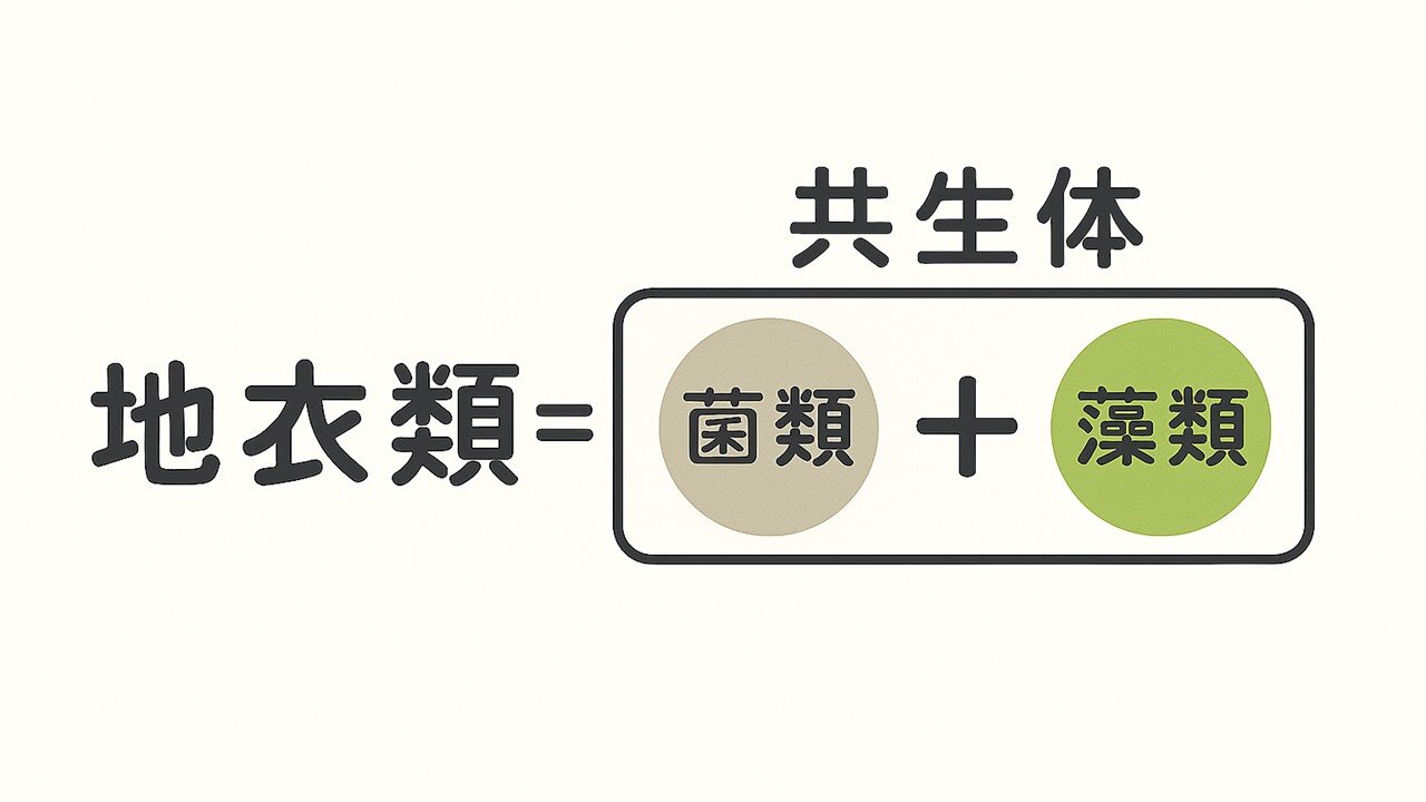 地衣類は、菌類が家を作り藻類を守り、藻類は安全な家の中で光合成を行うことで栄養を供給する、という共生関係を築いた生き物です。