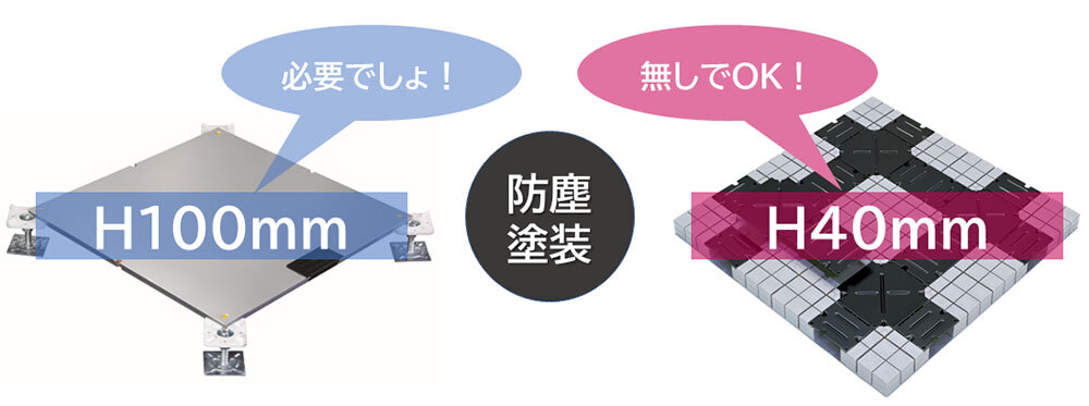 ネットワークフロアは、以下の2つの特長により防塵塗装が不要です。