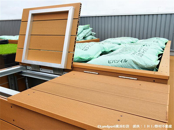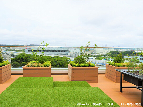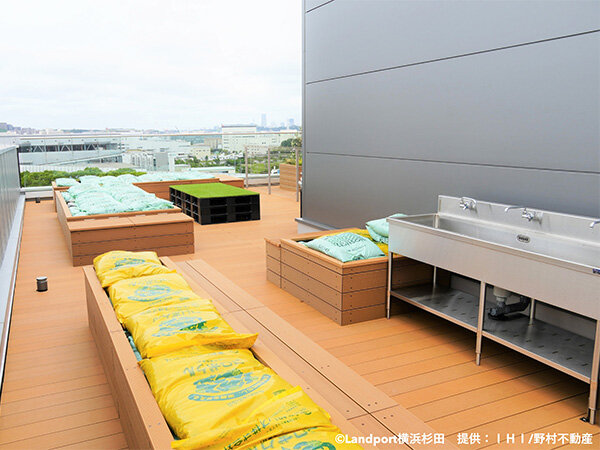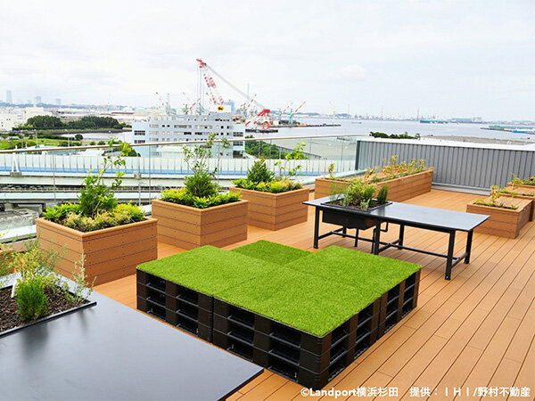 物流倉庫の限られた屋上スペースを有効活用し、自然と触れ合える場所を提供することを目指して工事がはじまりました。 今後は、テナントの皆様にとっての憩いの場として、また地域の方々が菜園づくりを楽しめるコミュニティスペースとして運用される予定です。