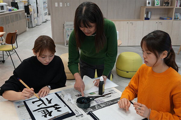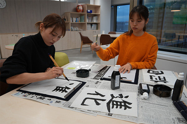 もともと書道は好きだったので、楽しみにしていました。最初はなかなか思うように書けず、納得いく字になりませんでしたが、書道師範の社員の方に教えていただき、短時間で上達することができました!書道を教えてもらう機会はなかなかないので、とても良い経験になりました。