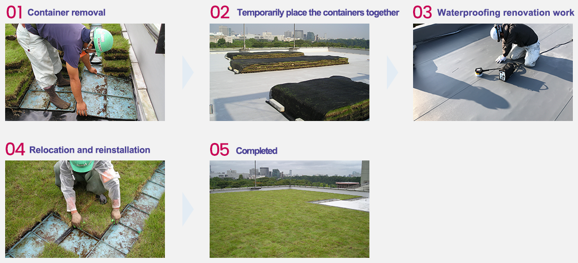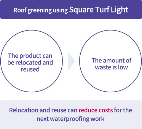 We would like to introduce an example of relocating rooftop greenery due to waterproofing work at a property that uses Square Turf Light.
