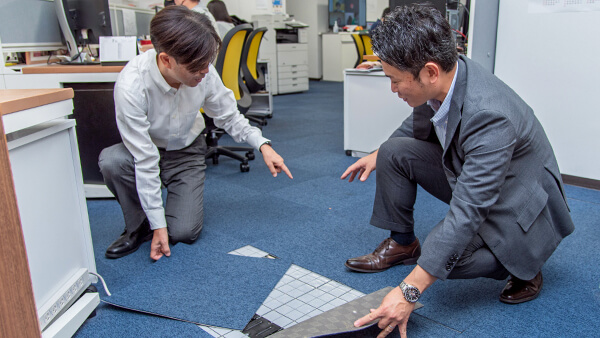 OAフロア製品の販売や施工だけではなく、OAフロアに関連するメンテナンスを行っています。あらゆるお困りごとに、OAフロアのプロフェッショナルが対応いたします。